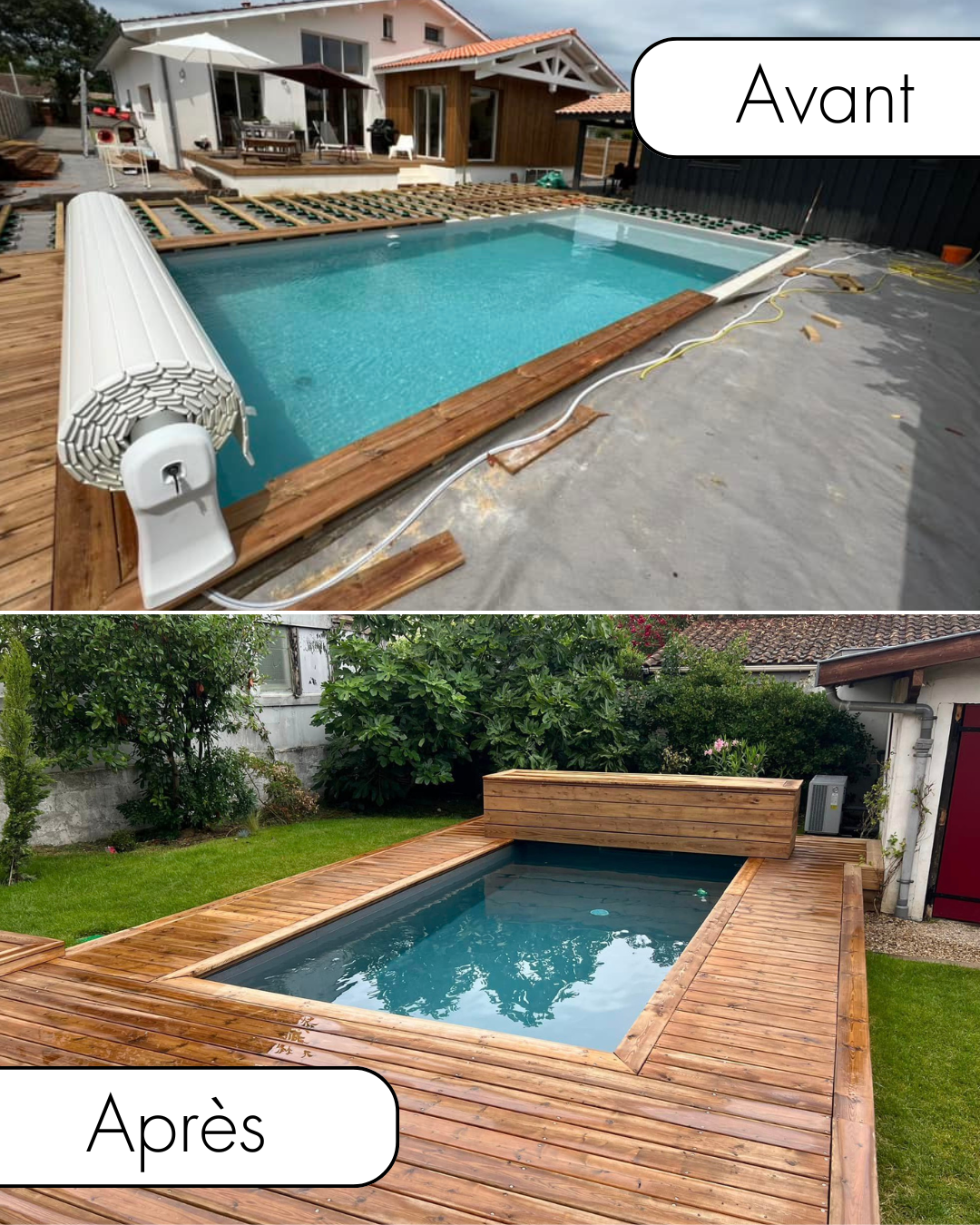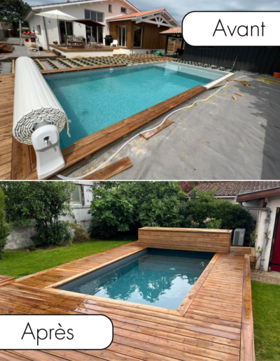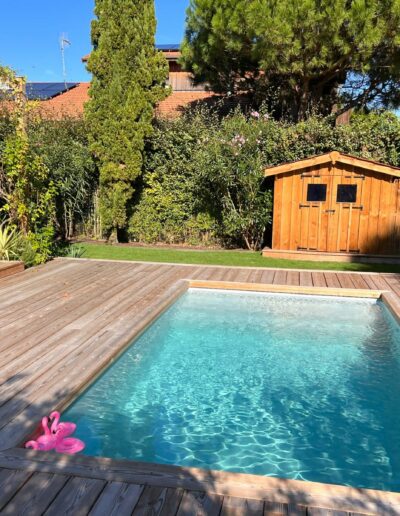 Notre piscine n’est pas une « piscine bois » mais une piscine haut de gamme qui a la particularité remarquable de posséder un bassin en bois massif 100% immergé, non traité et imputrescible avec une filtration bio (sans chlore, sans brome, sans sel), écologique, intelligente, et qui permet à l’utilisation de réaliser des économies conséquentes d’eau et d’électricité.